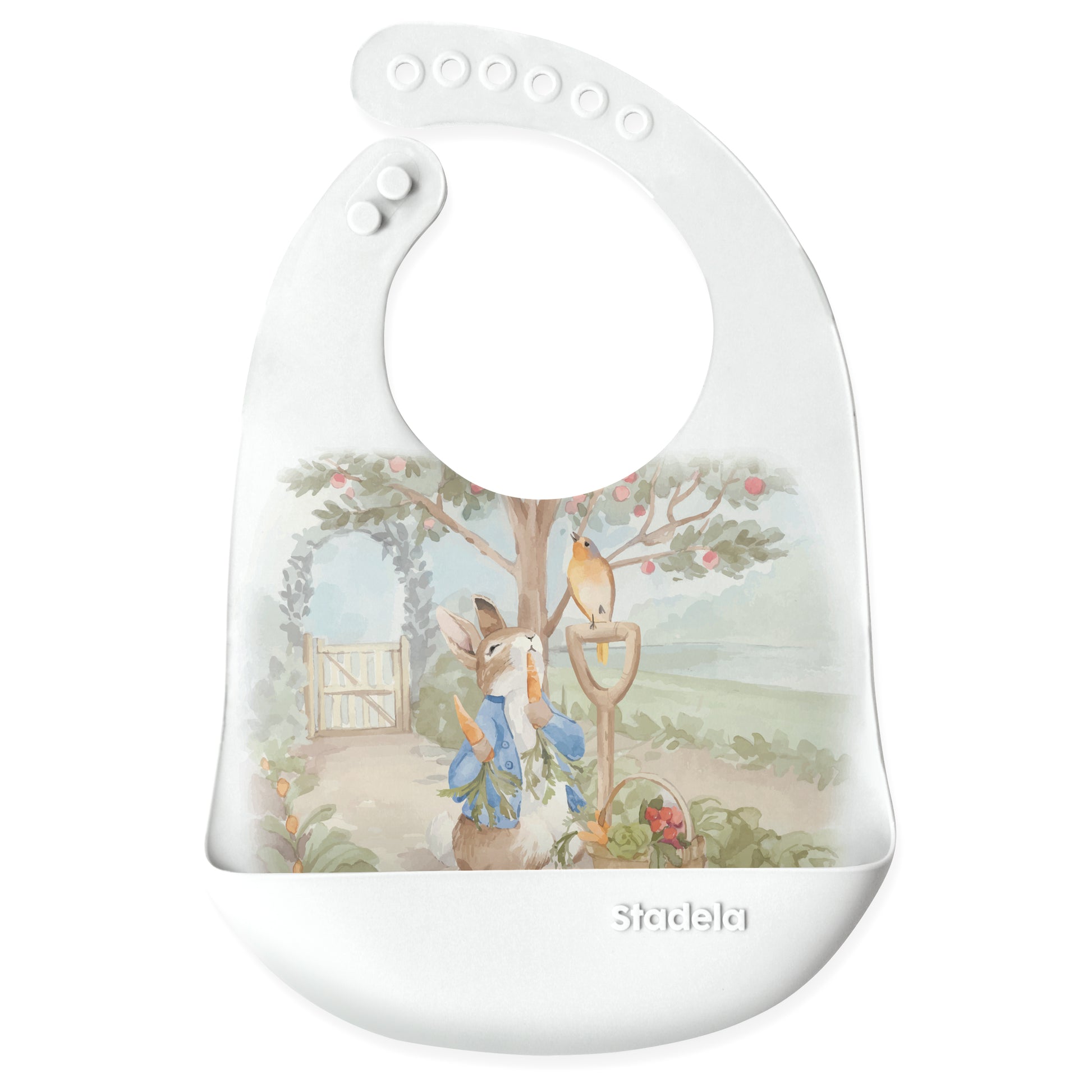 Our silicone bibs feature printing like no other. Thanks to our patent-pending printing process, we can showcase high-quality watercolor illustrations that last. Unlike other printed silicone bibs, our designs won’t wash off or scratch away, ensuring durability for meal after meal.
