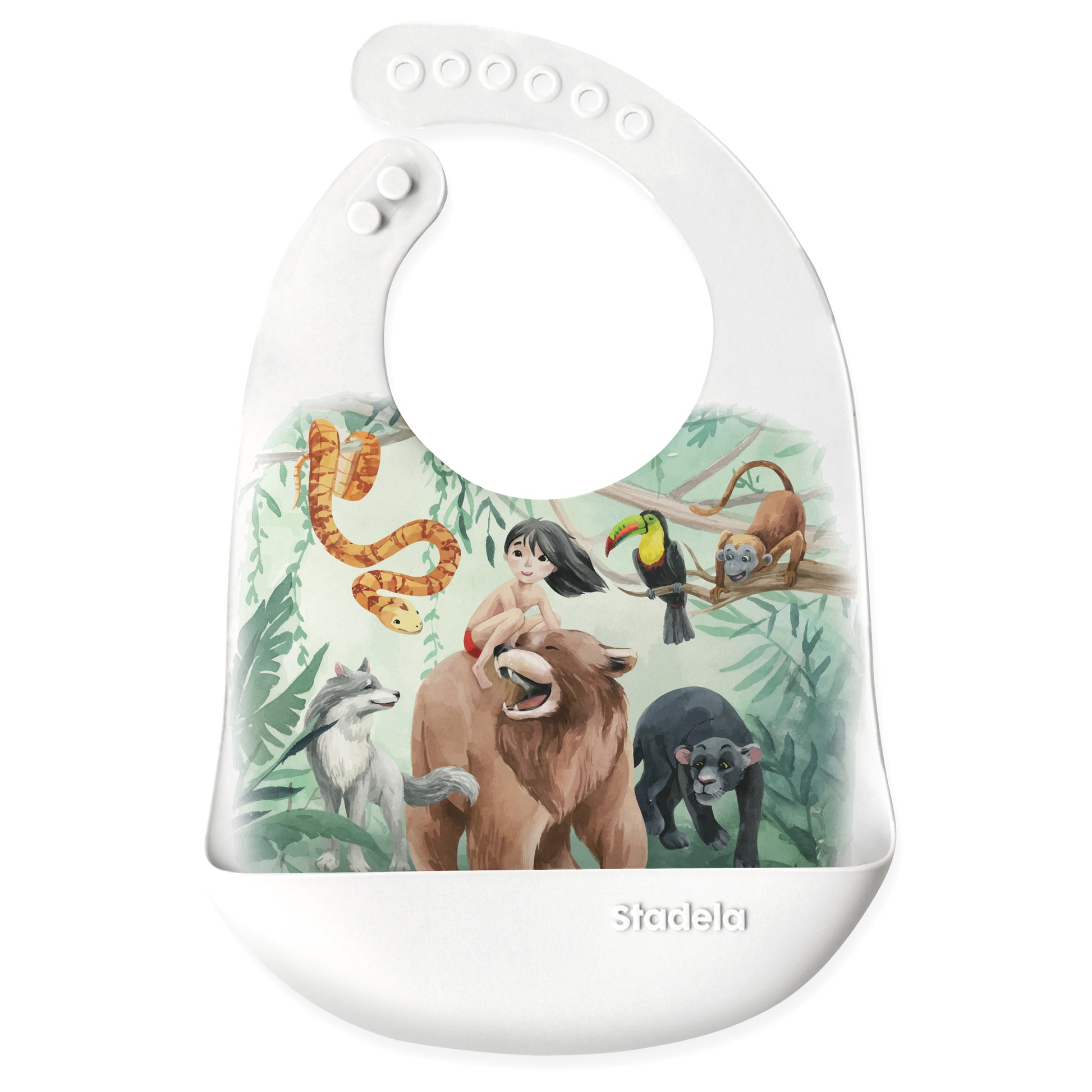 Our silicone bibs feature printing like no other. Thanks to our patent-pending printing process, we can showcase high-quality watercolor illustrations that last. Unlike other printed silicone bibs, our designs won’t wash off or scratch away, ensuring durability for meal after meal.
